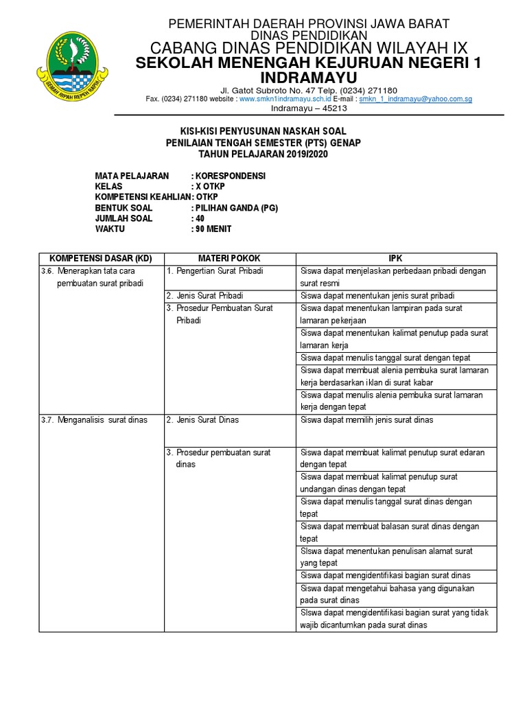 Soal soaldan jawaban korespondensi smk kelas x semester 2. Soal pilihan ganda surat dinas dan pribadi kumpulan surat penting. Aug 09, 2021 · berikut ini adalah kisi kisi soal pretest ppg 2018 yang merupakan kumpulan file dari berbagi sumber kisi kisi ppg tentang contoh soal korespondensi kelas 10 semester 2 beserta jawabannya yang bisa bapak ibu gunakan dan diunduh secara. May 04, 2021 · berikut ini adalah kisi kisi soal pretest ppg 2018 yang merupakan kumpulan file dari berbagi sumber kisi kisi ppg tentang contoh soal korespondensi kelas 10 semester 2 beserta jawabannya yang bisa bapak ibu gunakan dan diunduh secara gratis dengan menekan tombol download biru dibawah ini. Oct 24, 2020 · soal uts korespondensi.