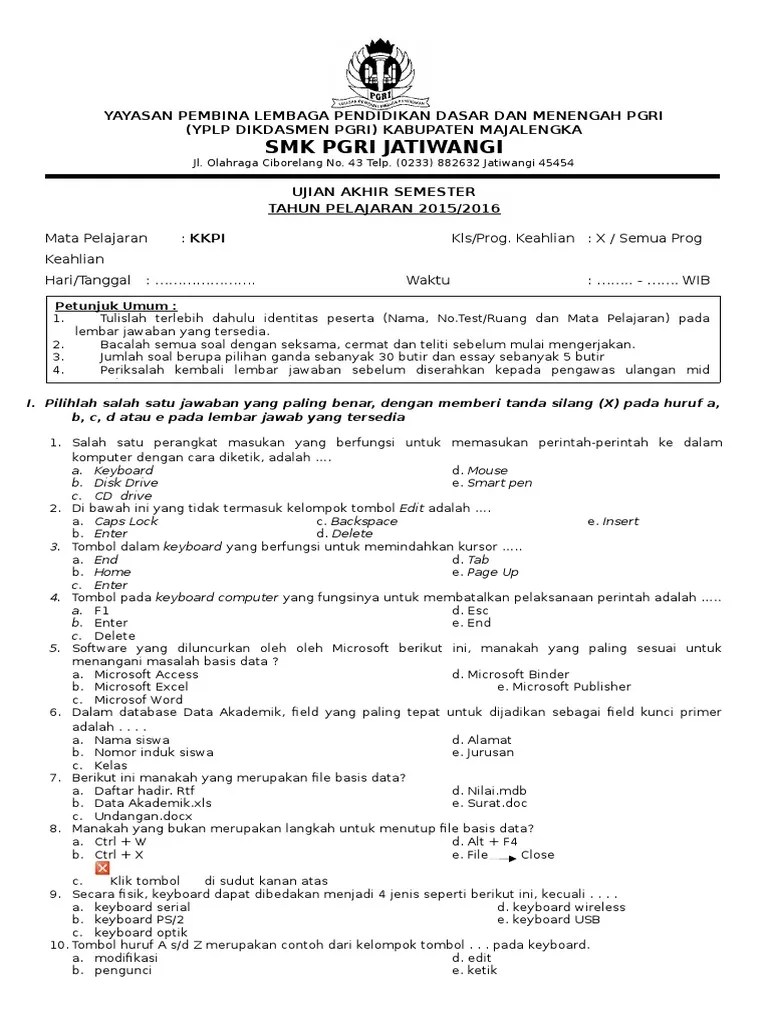 Oke, berikut soal kkpi pilihan ganda dan jawaban: